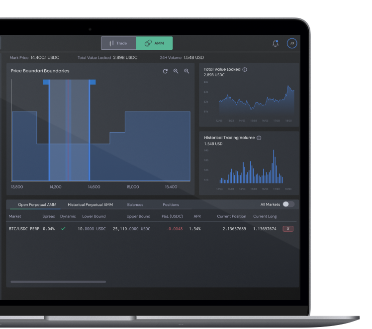 Liquidity on Aediflux is derived from customer assets in the form of AMM Instructions. This feature enables customers to seamlessly make markets on the Aediflux Order Book by allocating their assets within specified trading parameters. Upon submitting an AMM Instruction, the Aediflux AMM instantaneously generates thousands of individual bids and offers.